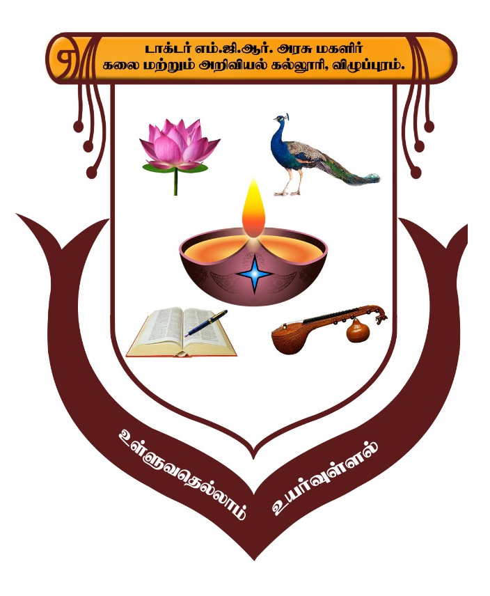 by a woman preceptor in ushering her words from the darkness of ignorance to the light of knowledge. It is the evolution of Vidya. The Veena below emphasizes the need for the promotion of fine Arts in curriculum. The four lotus petals enshrining the emblem represent the four legends of Learning Knowledge, Progress and Service. Underneath the emblem is the college motto: "ARS LONGA VITA BREVIS". Art is long, life is short.